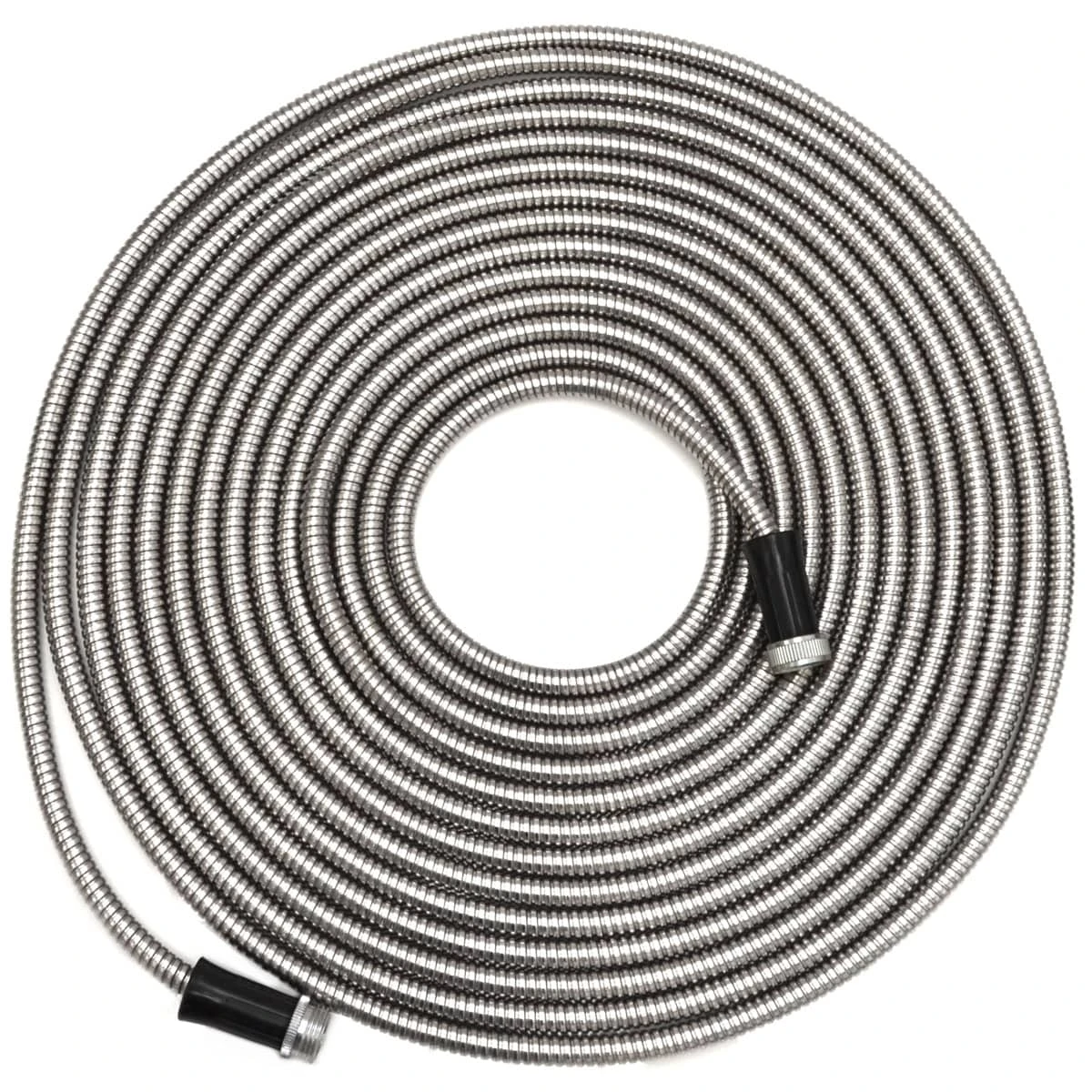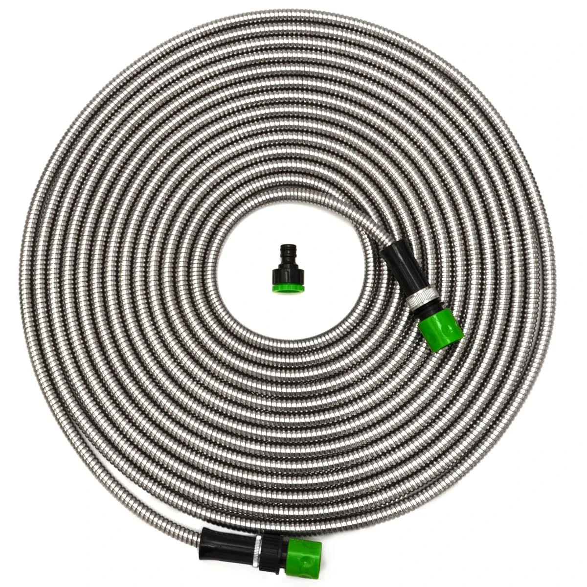 Die rostfreie Ummantelung aus 304 Edelstahl macht den Wasserschlauch extrem robust und strapazierfähig: Kein Knicken, Abdrücken oder Platzen – auch Dornen, Steine oder Äste haben keine Chance. Der stabile Mantel hält sogar Hundebisse aus!