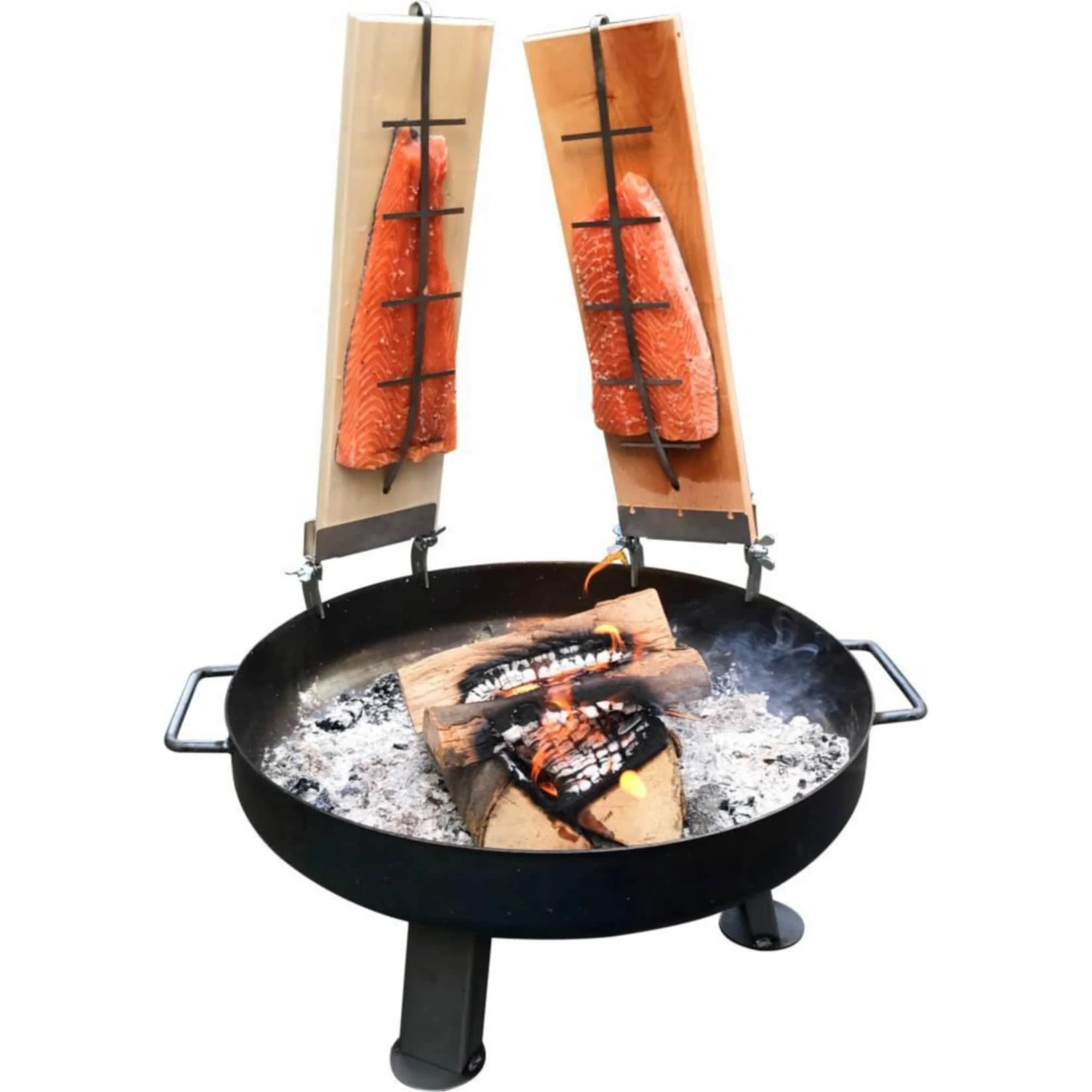Die Vorbereitung ist dabei denkbar einfach. Der Fisch wird mit der metallenen Fischgräte und mit wenigen Handgriffen auf dem Brett montiert und idealerweise an den Rand von Feuerschalen oder anderen Grillgeräten gesteckt. Die Filets sind bereits nach etwa 60min gar und verzehrbereit.