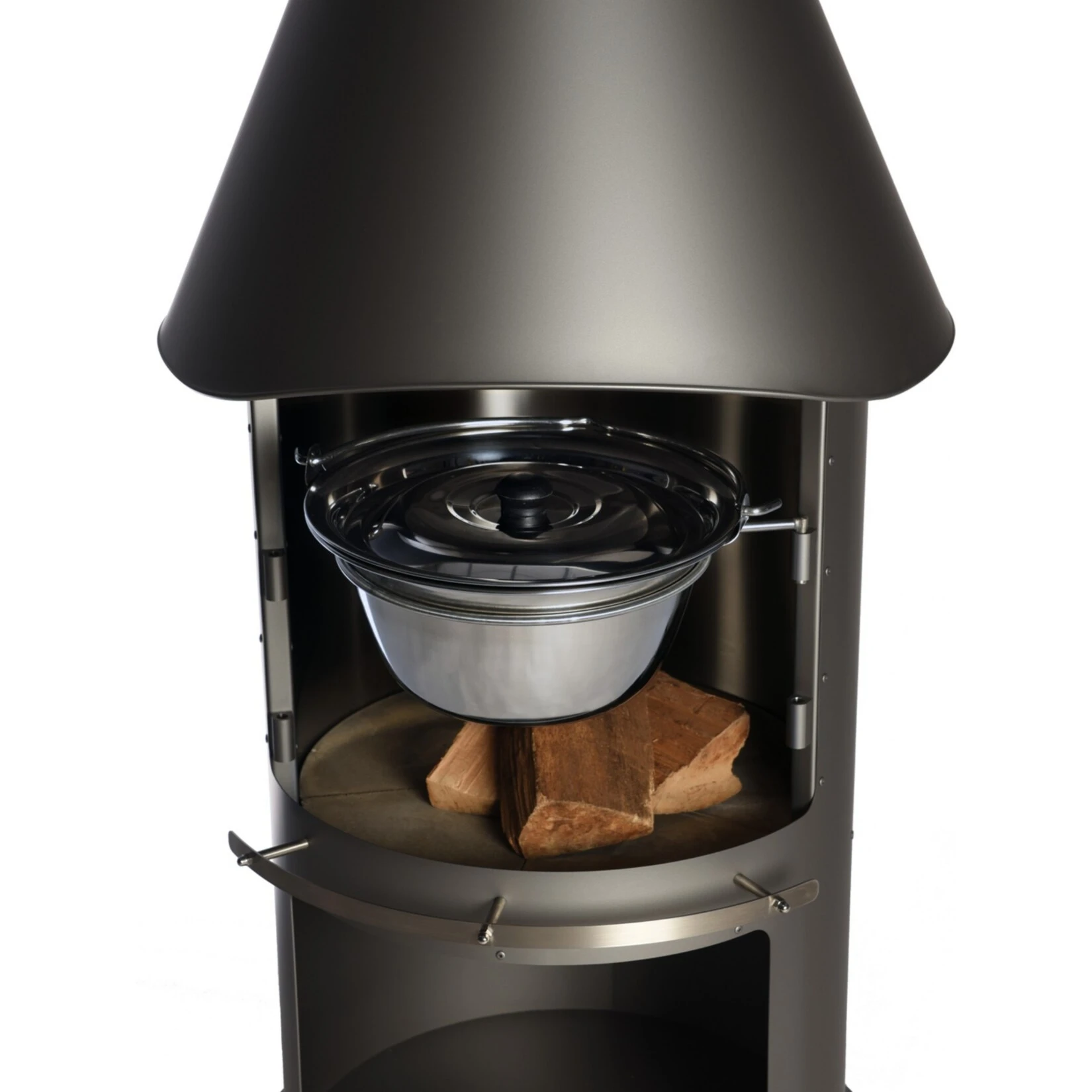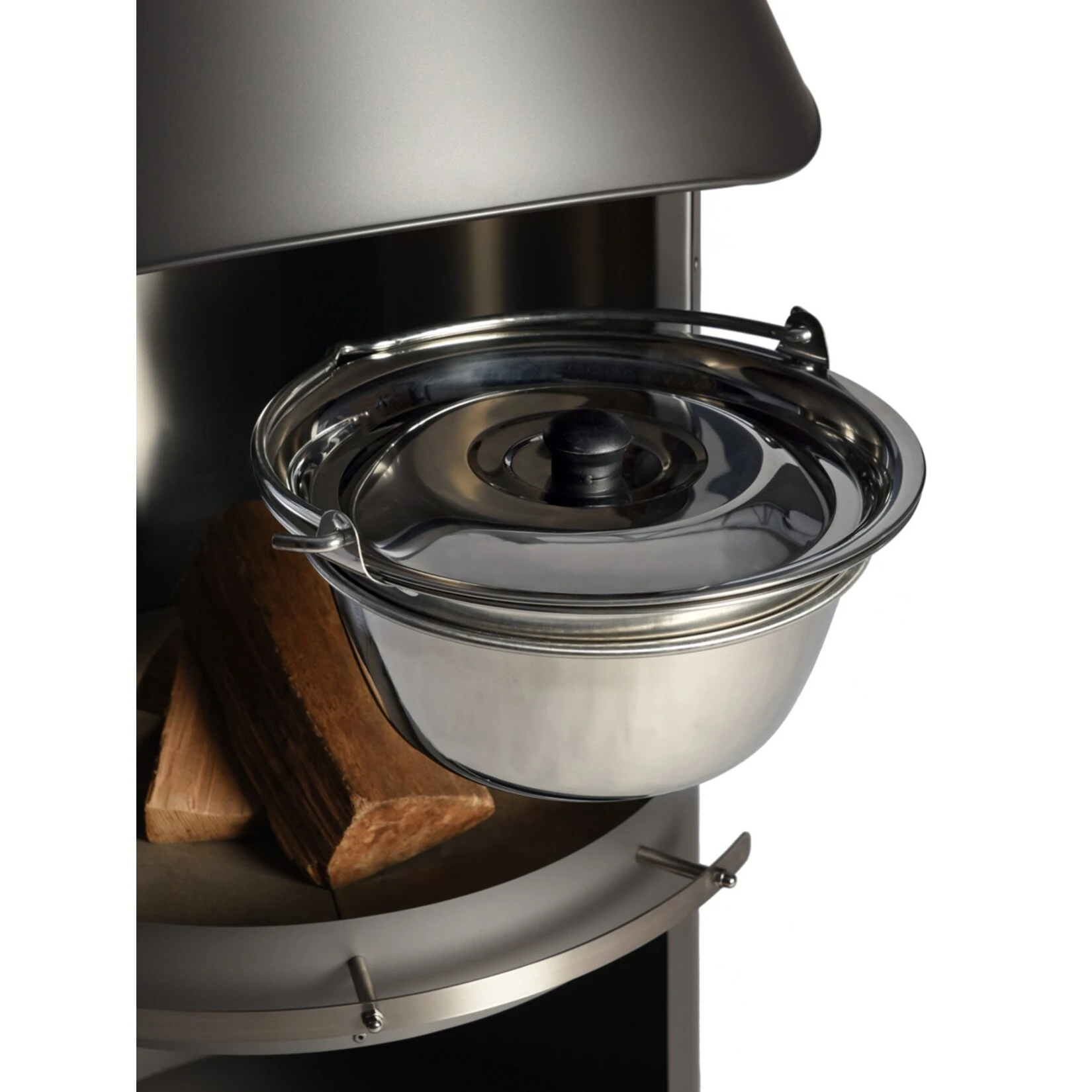 Einfach den stabilen Haltering am Edelstahlgrill Sydney oder Sydney Duo einstecken und den Topf in den Ring hängen. Die Entnahme des heißen Topfes wird durch den angebrachten Henkel erleichtert.