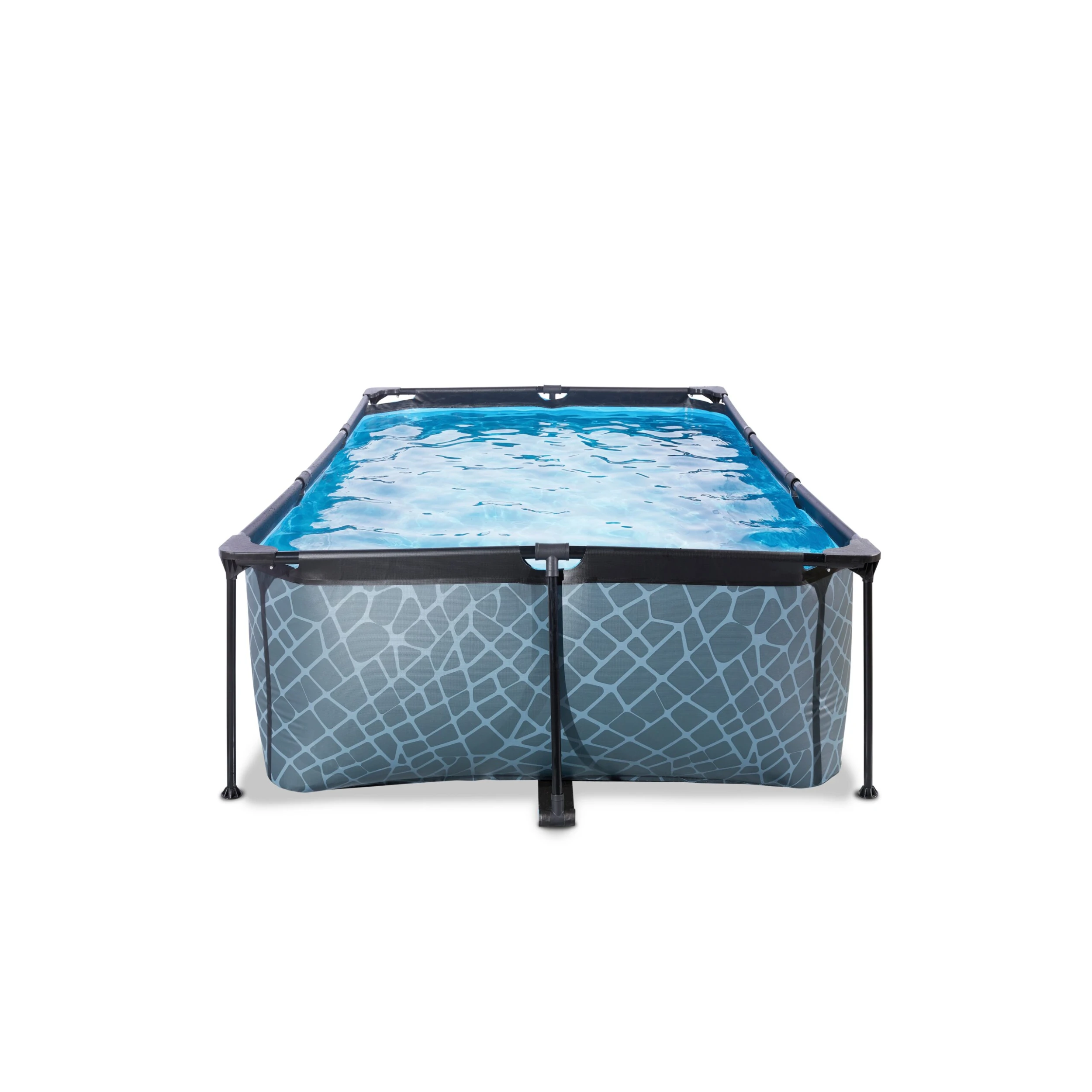 Der EXIT Stone Pool 220 x 150 x 65 cm ist ein rechteckiger, grauer Rahmenpool.