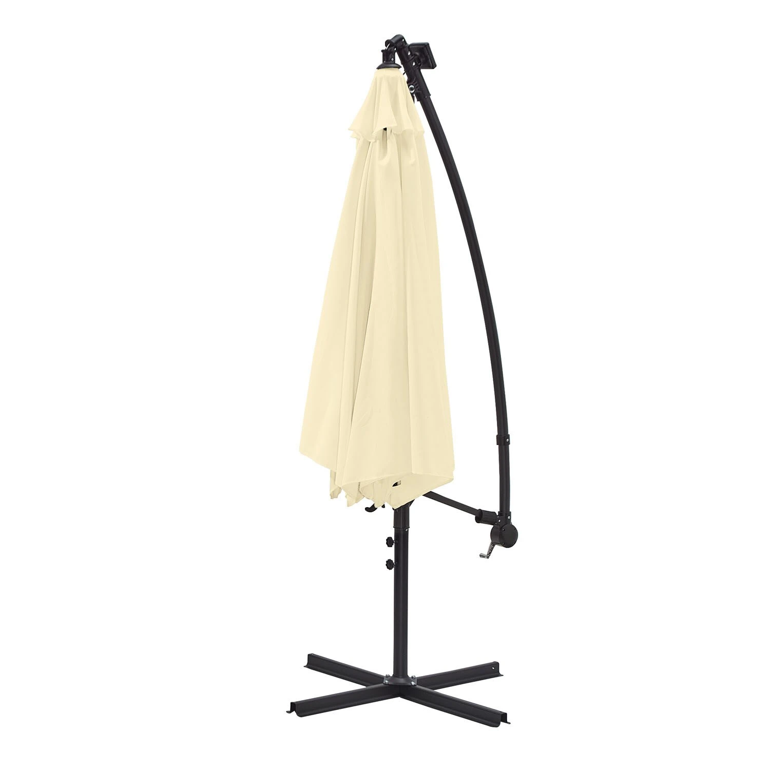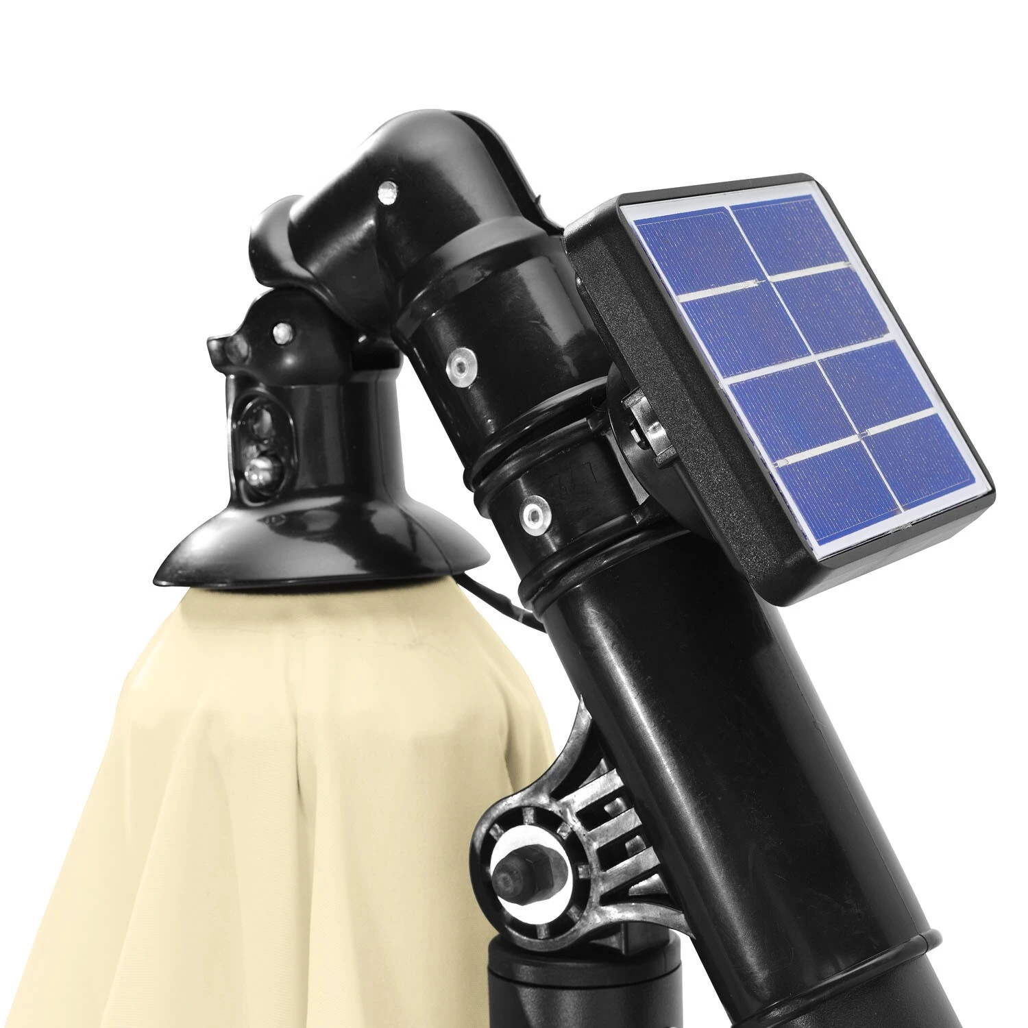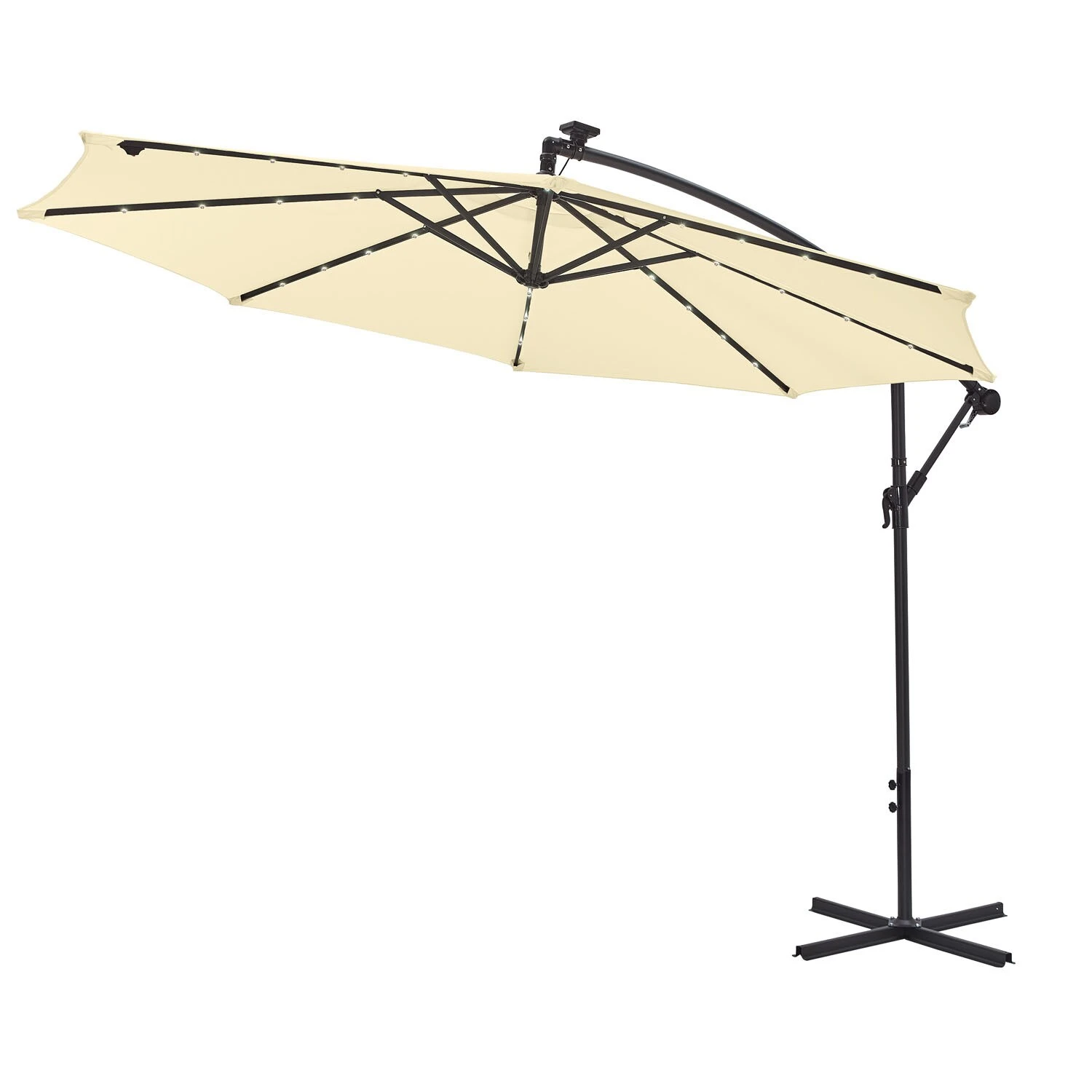 Stabiler und wetterfester Schirmmast aus Stahl, pulverbeschichtet (Ø48 mm) . Dach aus 100% Polyester, optimaler Sonnenschutz UV 50+, wasserabweisend, ca. 180 g/m2. Neigung entlang des Mastes einstellbar, 360° drehbar. Inkl. Plattenständer für Wegeplatten 50 x 50 x 4 cm (Lieferung ohne Platten) . Kurbelbedienung. Anzahl Streben: 8 . Mit Windöffnung , Schirmbezug tauschbar. Höhe 245 cm. Die 32 Solar LED Lampen sorgen mit ihrem stimmungsvollen Licht für ein angenehmes Ambiente