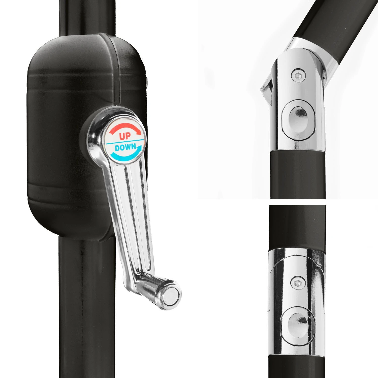 Der Gartenfreude Sonnenschirm ist aus einem stabilem Stahlgestell gefertigt. Der Durchmesser vom stabilen Schaft beträgt 38 mm. Der Schirm ist mit einer leichtgängigen Kurbel ausgestattet, durch diese die Schirme sich leicht öffnen und schließen lassen. Durch das vorhandene Knickgelenk lässt sich der Schirm neigen. Die Anzahl der Streben beträgt 8, diese bestehen aus stabilem, pulverbeschichteten Stahl. Die Textilbespannung besitzt eine Windöffnung und ist aus 100% Polyester mit ca. 180g/m² gefertigt. Der Stoff ist wasserabweisend und bietet einen UV-Schutz von 50+. Der Schirmbezug ist tauschbar und das Schirmdach kann geneigt werden. Die Gesamthöhe beträgt 250 cm. Die 32 Solar LED Lampen sorgen mit ihrem stimmungsvollen Licht für ein angenehmes Ambiente