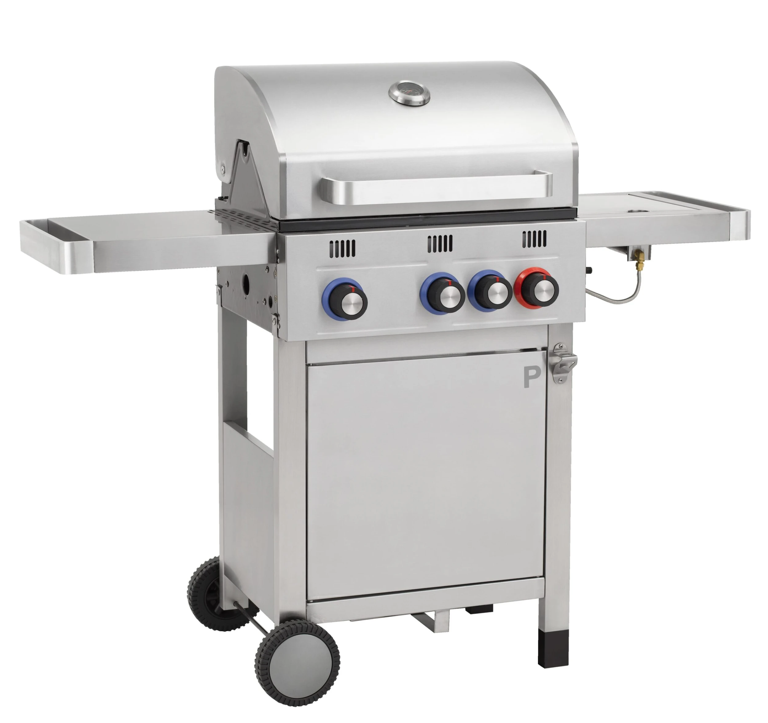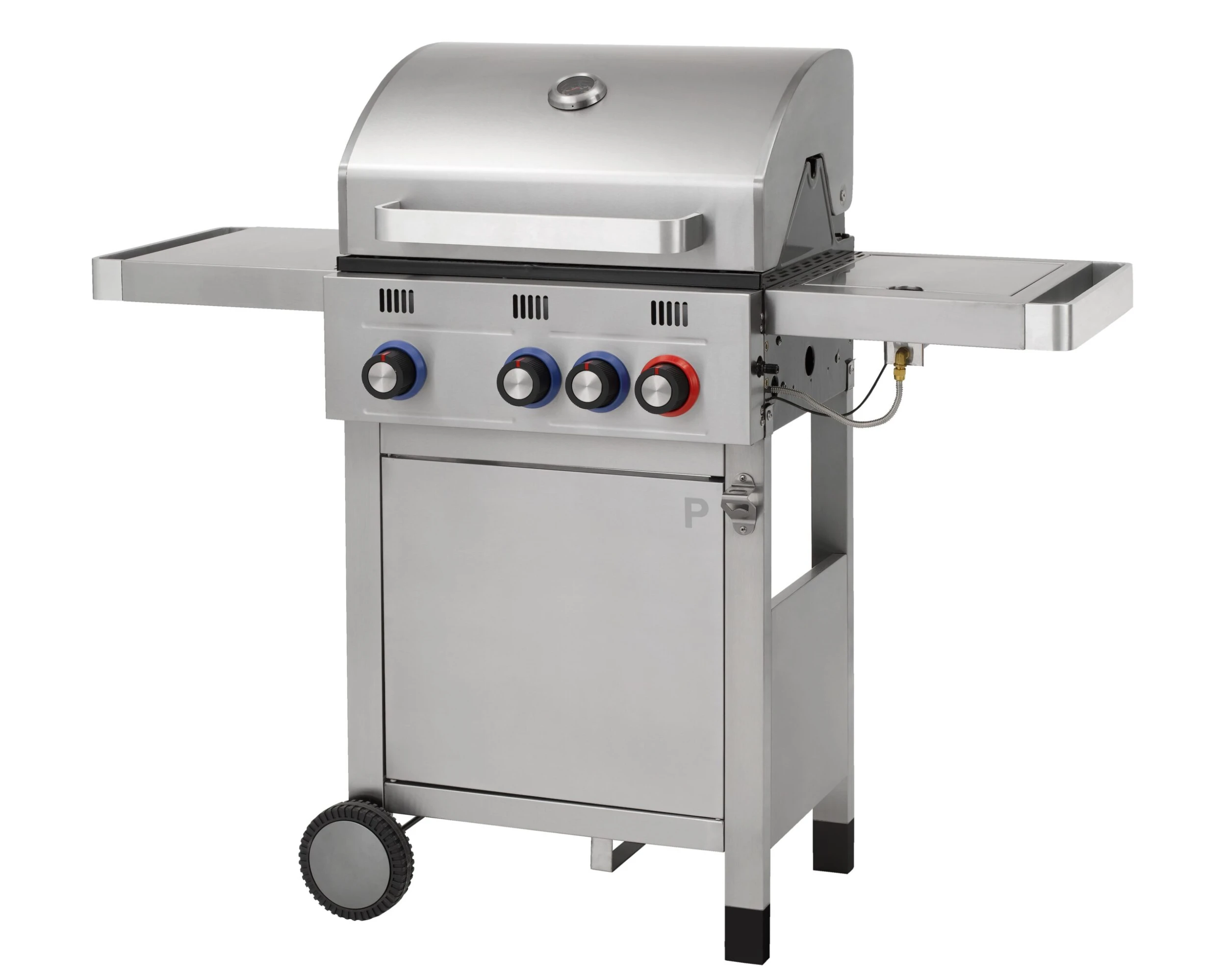 Thermometer- Edelstahl-Seitenablagen- emaillierte Feuerwanne – Edelstahl-Frontpaneel- Edelstahl-Trolley mit Edelstahl-Tür-