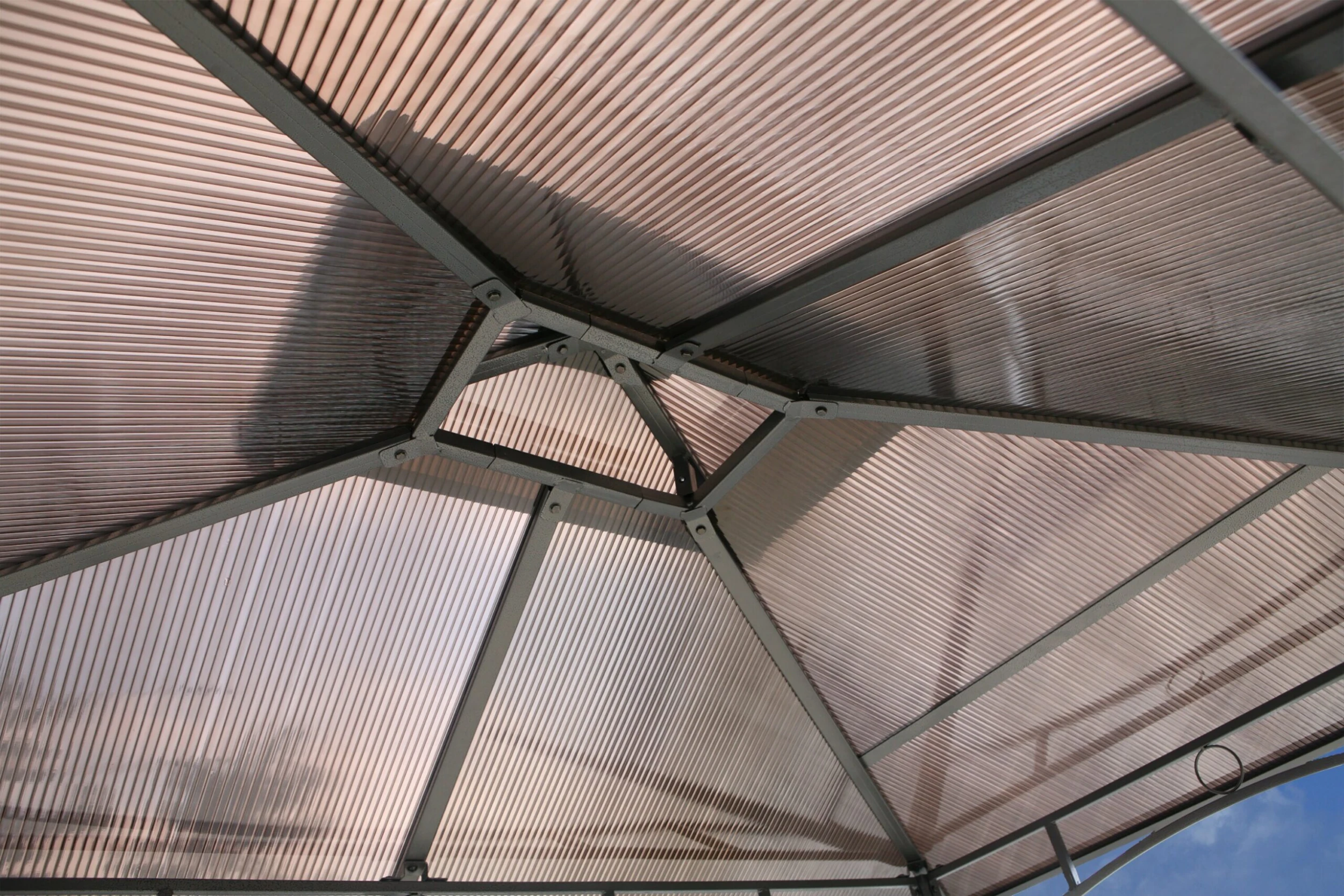 Ersatzdach zu BBQ Pavillon mit einem Doppel Dach System. Feuerhemmendes Hardtop Dach. Es werden nur die Hohlkammer / Doppelsteg Platten geliefert.