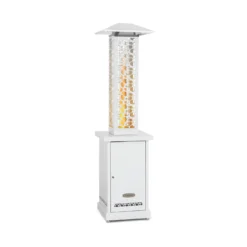 blumfeldt Heat Hunter Pellet-Terrassenheizer Freiluftheizung Pellet-Heizpilz | Heizleistung: 12,2 kW | Glaszylinder | 360°-Flammenansicht | Temperatur: bis 499 °C | Füllmenge: 3-9 kg | Brennzeit: 1,5-6 h | Bodenrollen | Edelstahl | weiß