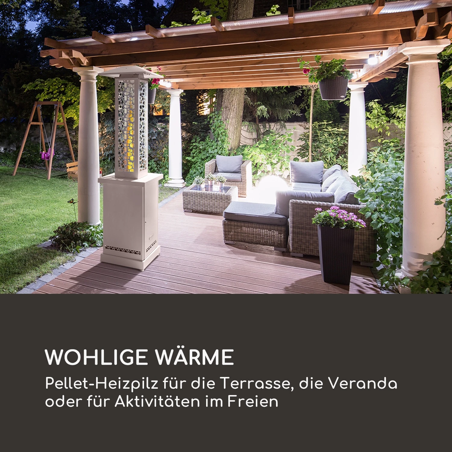 - Wohlige Wärme: Pellet-Heizpilz für die Terrasse, die Veranda oder für Aktivitäten im Freien