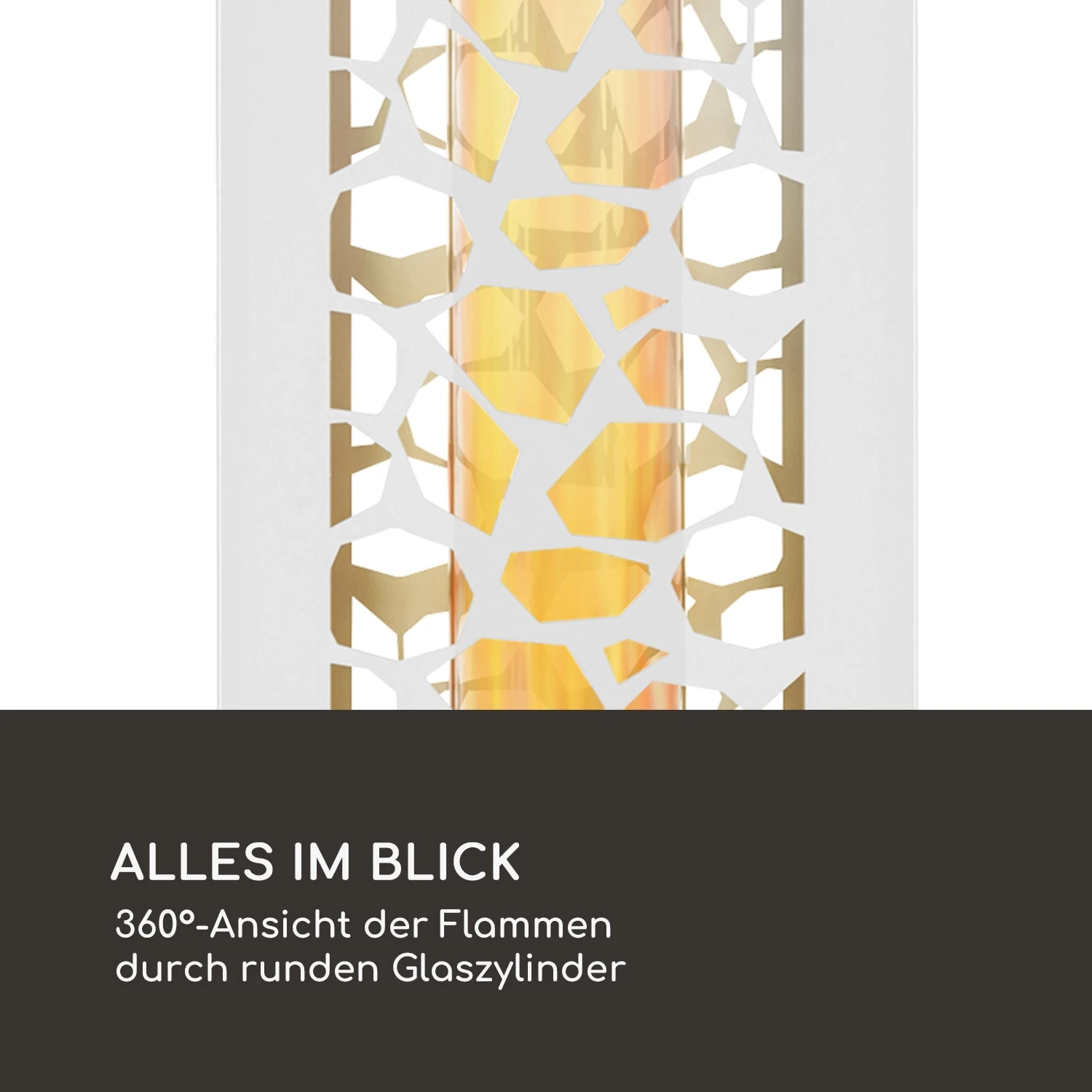 - Alles im Blick: 360°-Ansicht der Flammen durch runden Glaszylinder