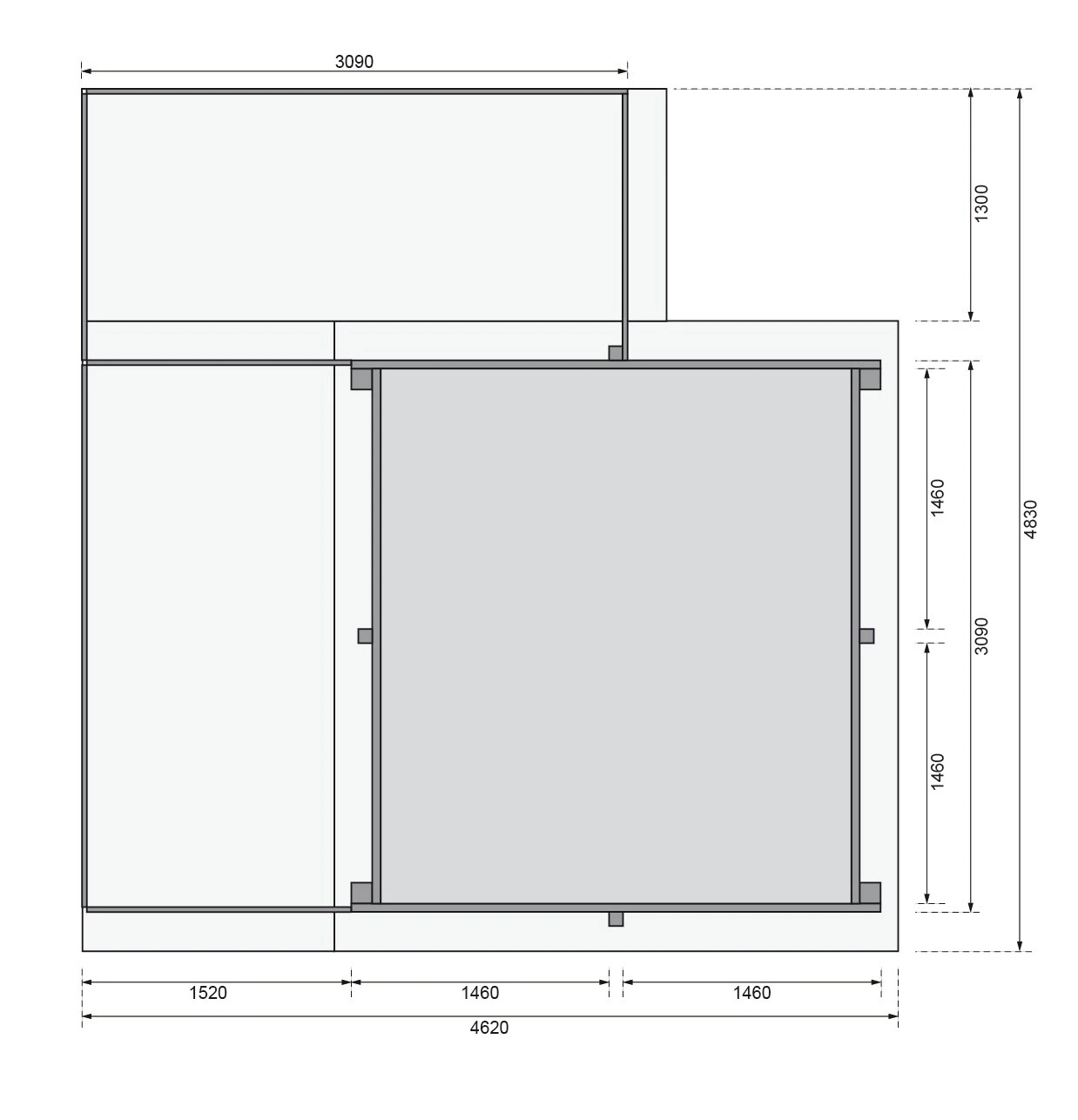 · Außenmaß Pool (BxT): 308,7 x 276,5 cm