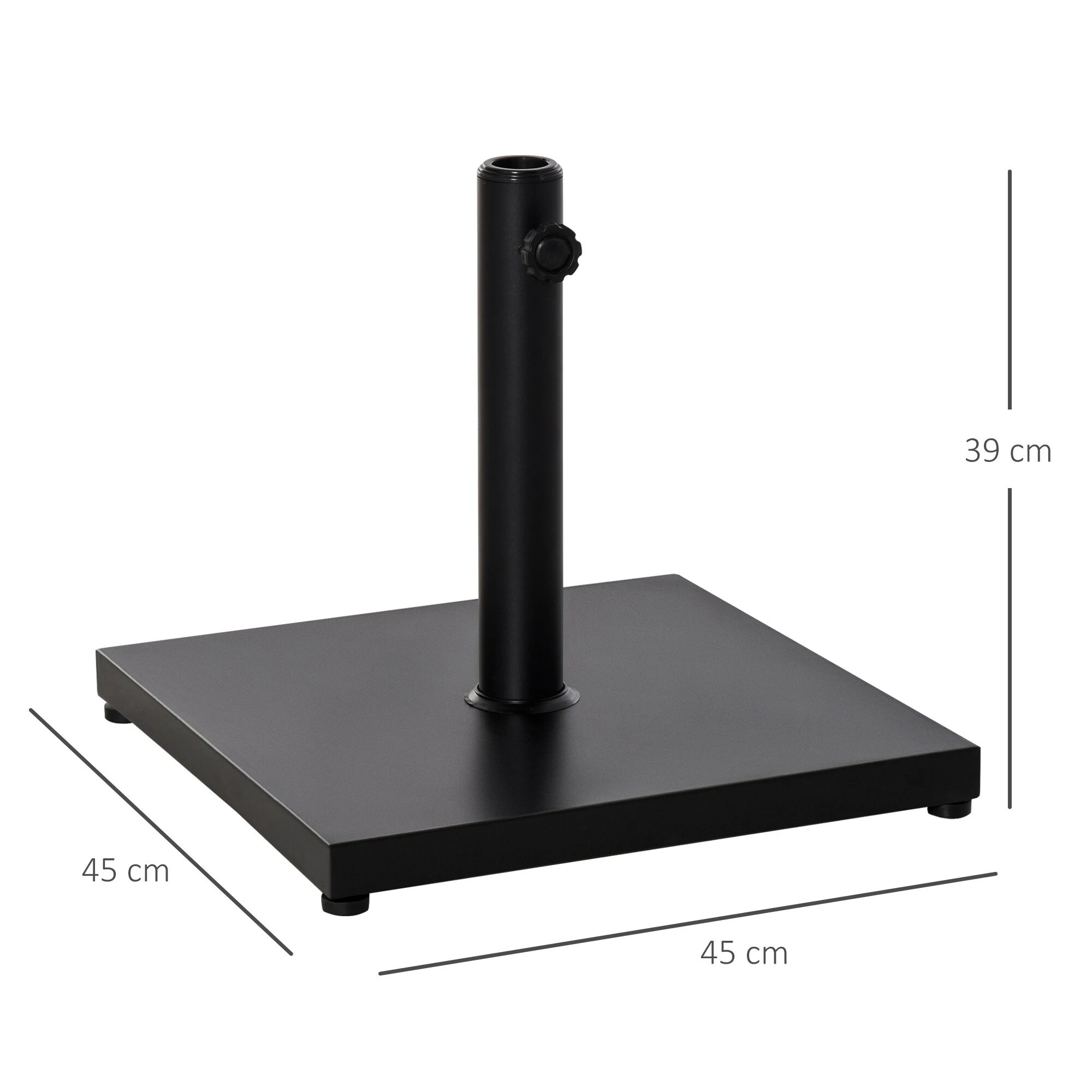 Ein ausgezeichneter Regenschirm ist für Ihren Sonnenschirm unverzichtbar. Unsere Regenschirmbasis wird an Ort und Stelle stehen, um Ihren Regenschirm zu stabilisieren. Unsere Regenschirmbasis aus hochwertigem Stahl ist langlebig genug für einen dauerhaften Gebrauch. Es kann an vielen Orten wie Garten, Terrasse, Balkon und Pool platziert werden. Mit seiner eleganten schwarzen Oberfläche ist die Basis stilvoll gestaltet, um Ihrem Haus zusätzliche Schönheit zu verleihen. Diese Basis wird mit dem erforderlichen Zubehör geliefert und es ist einfach, die Regenschirmbasis selbst zu installieren.