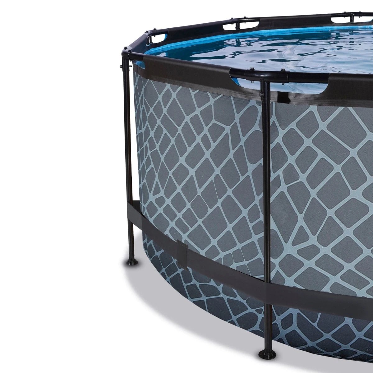 Der runde EXIT Pool Stone ist durch sein Design ein moderner Hingucker für Ihren Außenbereich. Schwarzer extrem robuster Stahlrahmen und widerstandsfähiger 3-lagigen Wände aus PVC und Polyester sorgen für optimale Stabilität. Ausgestattet mit einer kraftvollen Sandfilterpumpe die das Wasser sauber hält und einer Poolleiter bietet dieser EXIT Pool sofort einem einzigartigen Badespaß.