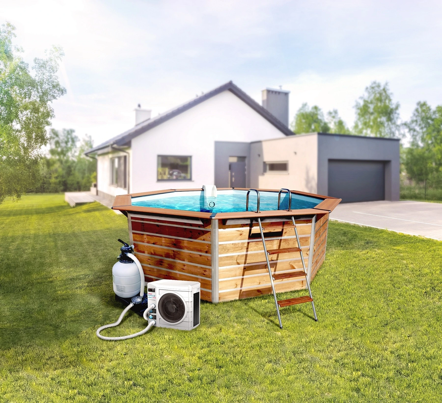 Als Premium-Wärmepumpe konzipiert, erbt sie deren Leistung in einer ultrakompakten Größe, und dank ihres Gewichts kann sie nach der Saison leicht transportiert werden.