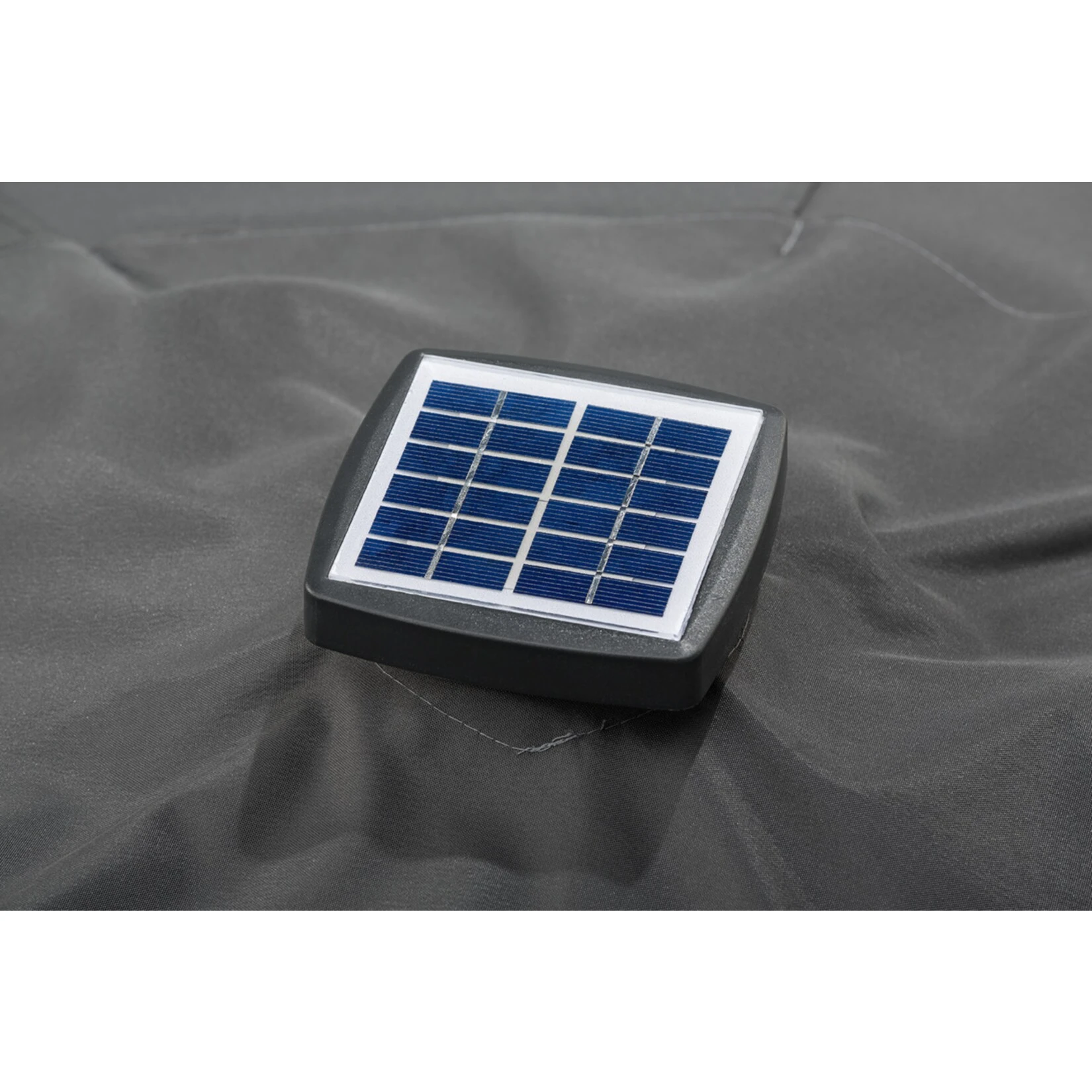 Er schützt Sie tagsüber nicht nur vor Sonneneinstrahlung, sondern bietet Nachts mit seinen LED-Leisten auch eine Lichtquelle. Das Solartop lädt sich tagsüber von alleine auf, sodass der Schirm in der Dunkelheit strahlt.