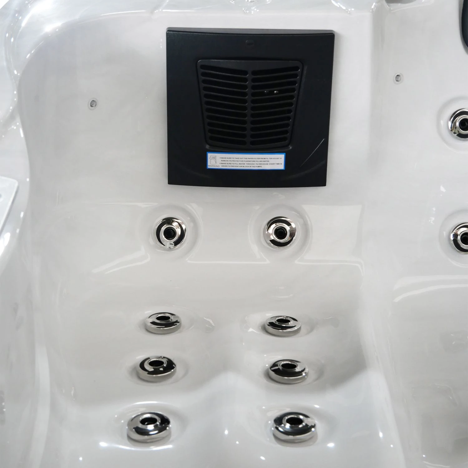 Die insgesamt 29 eingelassenen Whirlpool-Düsen sorgen für maximales Wellness-Erlebnis und bringen den Körper und Geist in Einklang. Sie haben die Möglichkeit die Einstellungen bzw. die Intensität der Düsen auf ihr persönliches Wohlbefinden anzupassen. Hierzu dienen die Regulierungsknöpfe am Wannenrand. Weiterhin können Sie an einzelnen Whirlpool-Düsen einzigartige Einstellungen vornehmen, indem Sie die Öffnung dieser Düsen steuern, durch simples Auf- und Zudrehen.
