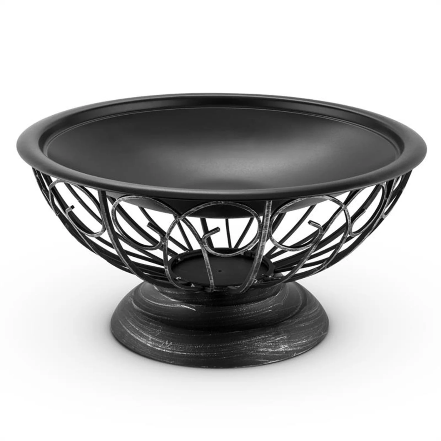 Dekorative Feuerschale mit 75 cm Durchmesser in antikem Design aus brüniertem Stahl.