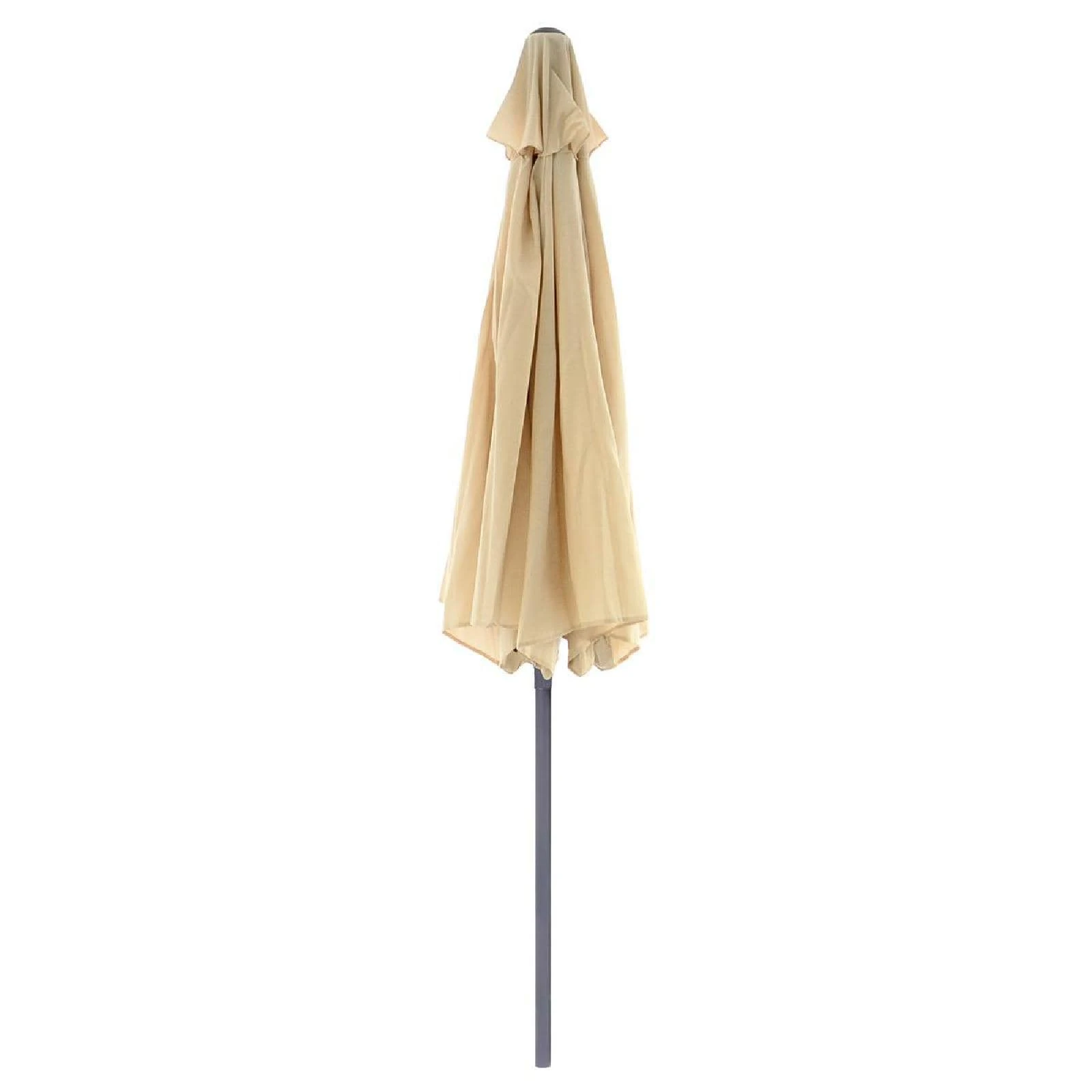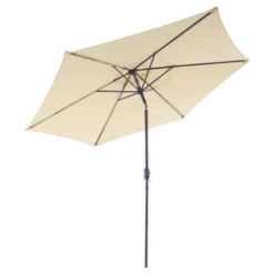 Der creme-farbene / beige Schirm hat einen Durchmesser von fast 3m. Der Stamm und die 6 Rippen sind aus Stahl. Der Strandschirm ist mit einer Kurbel ausgestattet und knickbar.