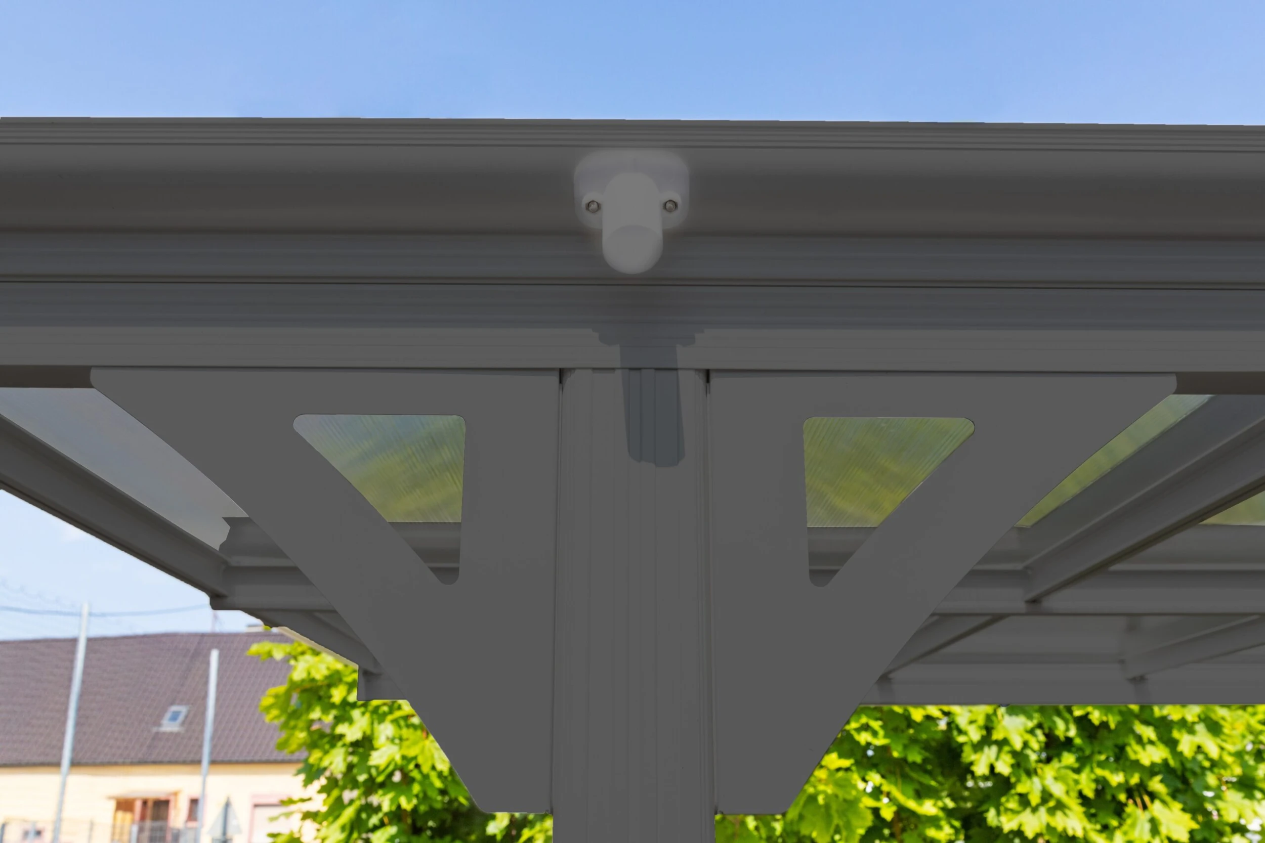 Das Dach aus Doppelstegplatten hält Schneelasten von bis zu 100 kg/m² stand, ist UV-beständig und sorgt für einen hohen Lichteinfall.